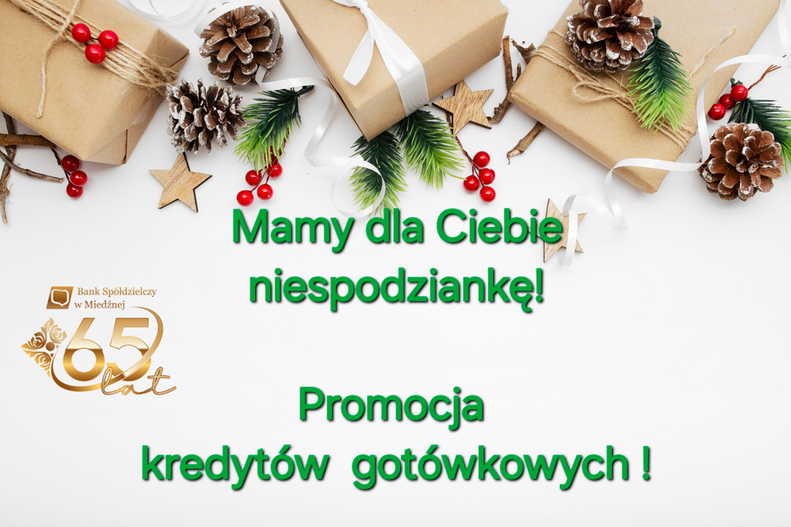 Zbliżające się święta to czas radości, ale także wydatków związanych z zakupem prezentów, organizacją rodzinnych spotkań czy wyjazdami. Z myślą o Państwa potrzebach, przygotowaliśmy atrakcyjną ofertę kredytu świątecznego, która pomoże zrealizować wszystkie świąteczne marzenia!